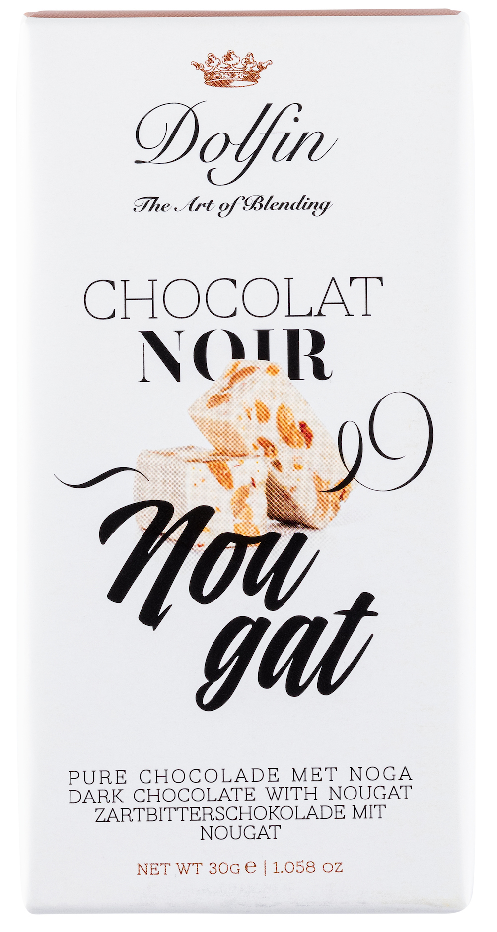 Zutaten: Kakaomasse, Zucker, Nougat 3% (Zucker, Glucose, Mandeln, Kartoffelstärke, Honig, Kakaobutter, Hühnereiwei?, natürliches Vanillearoma), Kakaobutter, Emulgator: Sojalecithin, natürliche Aroma's. Kakao: 60% mindestens. Kann Spuren andere Nüssen, Milch, Gluten und Sesam enthalten.