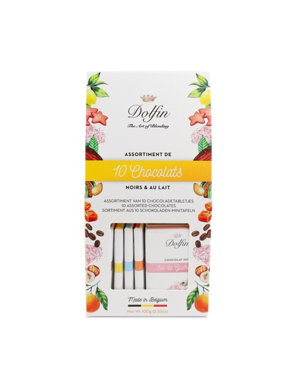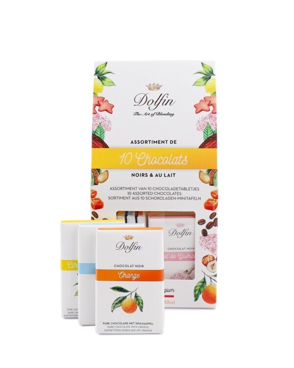 Wir bei Dolfin sind der festen Überzeugung, dass das Glück in den kleinen Dingen zu finden ist. Was könnte auch im kleinen Format köstlicher sein als unsere brandneuen Schachteln mit 10 Mini-Schokoladentafeln? Eine exklusive Kollektion, die entwickelt wurde, um Ihre Sinne zu wecken und Ihren Alltag aufzuheitern.