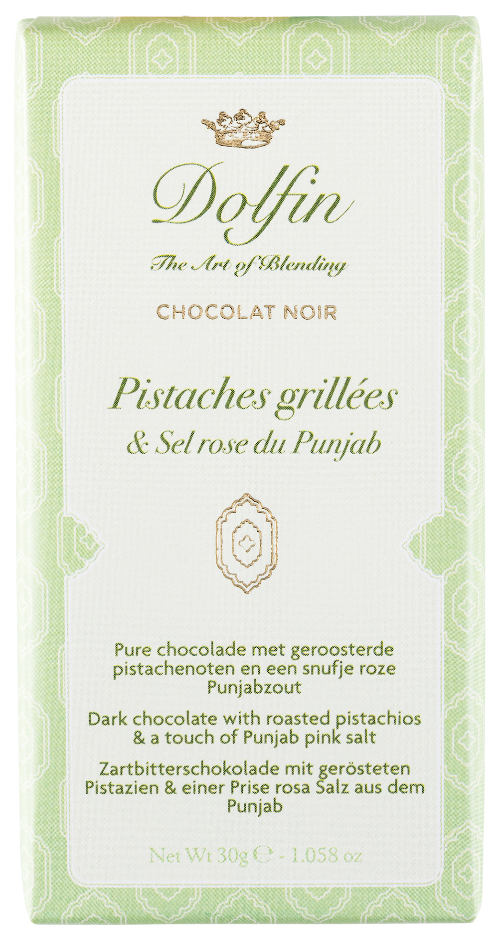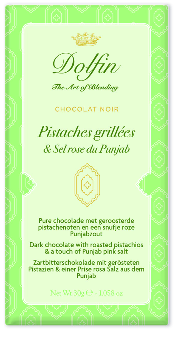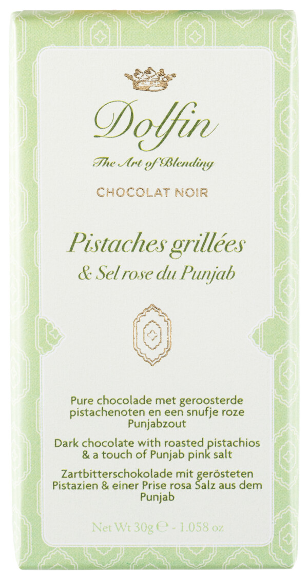 Genießen Sie eine edle Mischung aus Zartbitterschokolade, knackigen Pistazien und dem einzigartigen, zarten und erlesenen Geschmack des rosa Punjab-Salzes, das zahlreiche Mineralstoffe und Spurenelemente enthält.