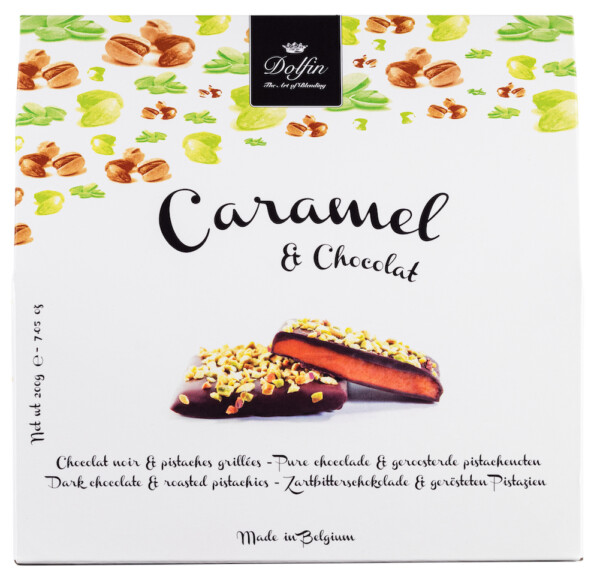 Frisch und knackig Pistazien beleuchten die gesalzene Butter Karamell mit einem dunklen Schokolade mit süßen Noten und intensiv auf einmal beschichtet.