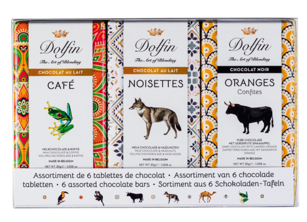 An assortment of 6 of 30g chocolate bars combining the most successful flavours of the range. A real explosion of subtle savours that guarantees fun and escape throughout the tasting.