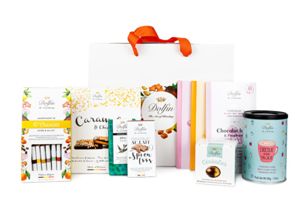 - 3 tablets of 70g: milk salted caramel, dark 70% & fleur de sel from Guérande, and white raspberry