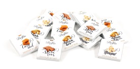 Assortiment van 32 chocolaatjes met 4 smaken: melk speculaas, melk karamel, puur gezouten amandelen en puur noga.