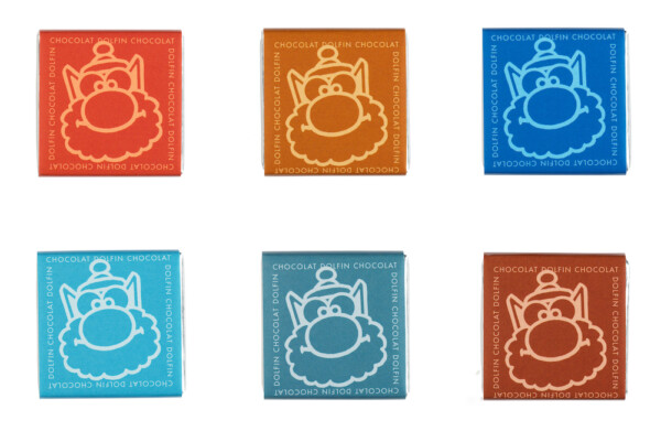 6 onweerstaanbare smaken: zwarte chocolade 70% cacao – zwarte chocolade met gezouten amandelen – zwarte chocolade met sinaasappel – melkchocolade 37% cacao – melkchocolade met karamel – melkchocolade met speculaas.