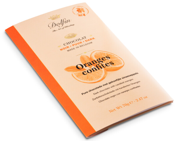 Ingrediënten : Cacaomassa, suiker, gekonfijte sinaasappel 3,6% (sinaasappel, suiker, glucosestroop), cacaoboter, emulgator: sojalecithine, natuurlijke vanille- en sinaasappelaroma's. Ten minste 60% cacaobestanddelen. Kan schaalvruchten, eieren, melk, gluten en sesam bevatten.