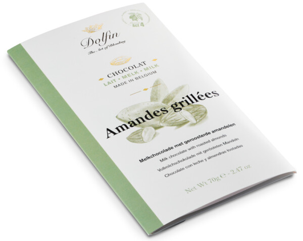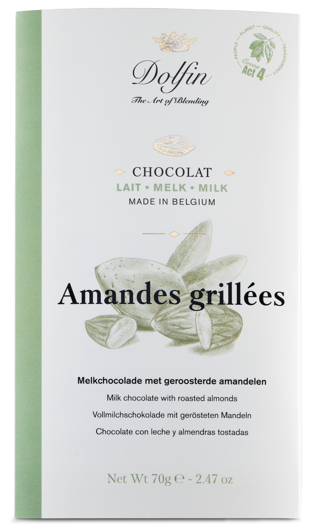 L’amande bien grillée craque sous la dent et donne de la pétillance au généreux chocolat au lait.