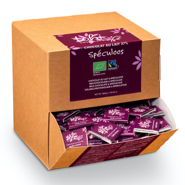 Le véritable biscuit traditionnel belge et son savant dosage d’épices apporte au chocolat au lait sa saveur douce et craquante.