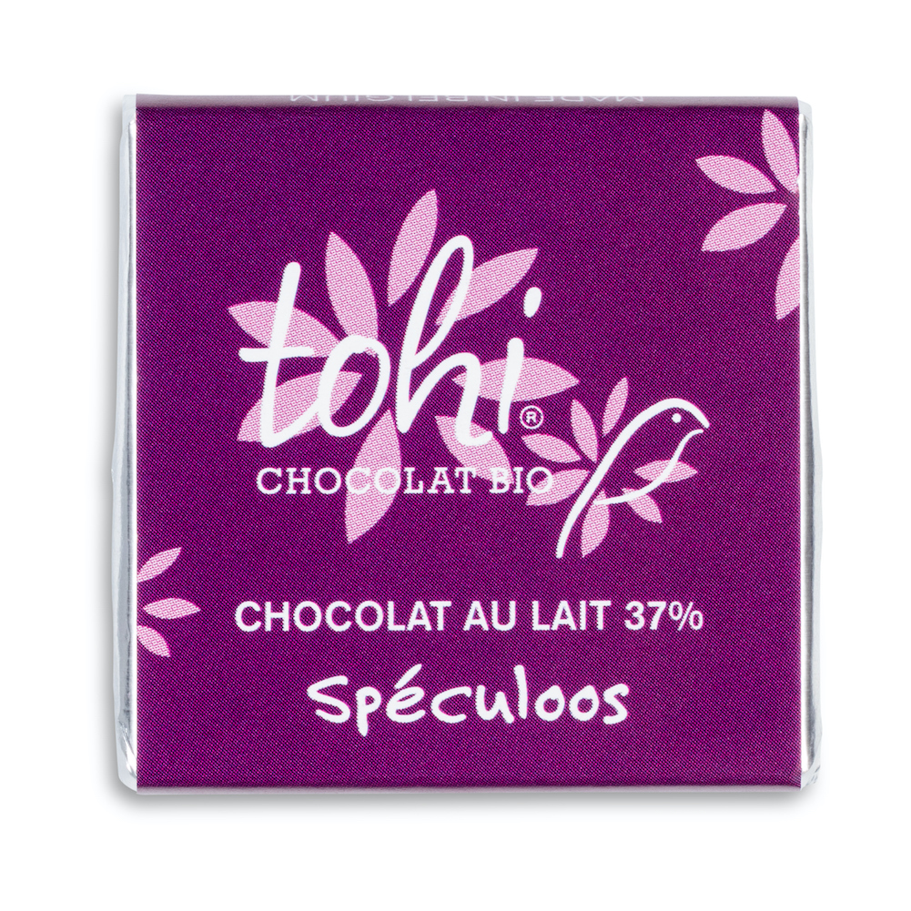 Ingrédients : Sucre de canne*, beurre de cacao*, lait en poudre entier*, pâte de cacao*, spéculoos* 3% (farine de froment*, sucre de betterave*, huiles végétales* (coprah*, tournesol*), sirop de betterave*, oeufsentiers*, canelle de Ceylan*, épices*, carbonate de sodium (poudre à lever)), épices spéculoos 1% (cannelle de Ceylan*, muscade*, gingembre*, anis étoilé*, vanille en poudre*), vanille*. Cacao : 37% minimum. Peut contenir des fruits à coque, du soja et du sésame. * ingrédients issus de l'agriculture biologique - Contrôle CERTISYS-BE-BIO-01 - www.certisys.eu - Cacao, sucre, et vanille : certifiés Fairtrade. 74,8% du poids total. info.fairtrade.net/sourcing.