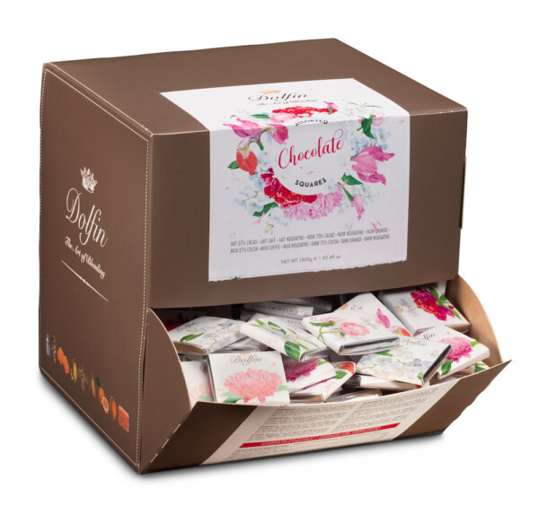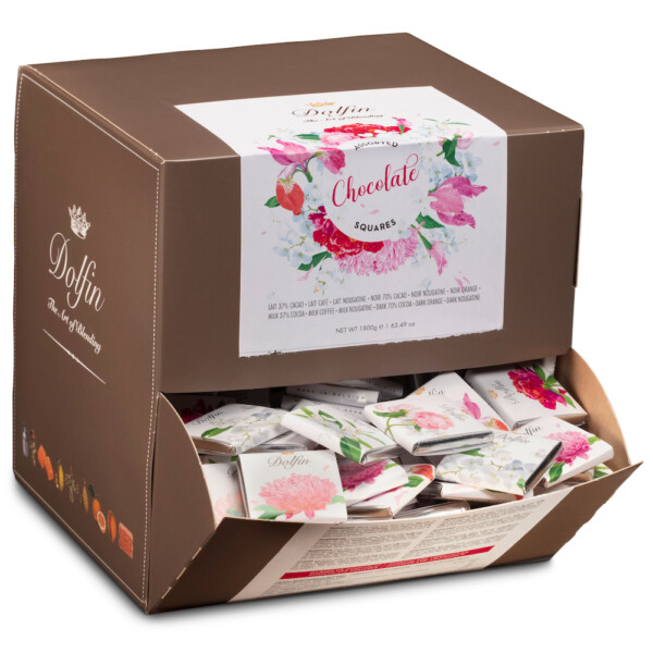 Notre boite de napolitains en vrac « Fleurs » se décline en 6 saveurs ultra-gourmandes ; lait 37% de cacao, lait nougatine, lait café, noir 70% de cacao, noir orange et noir nougatine.